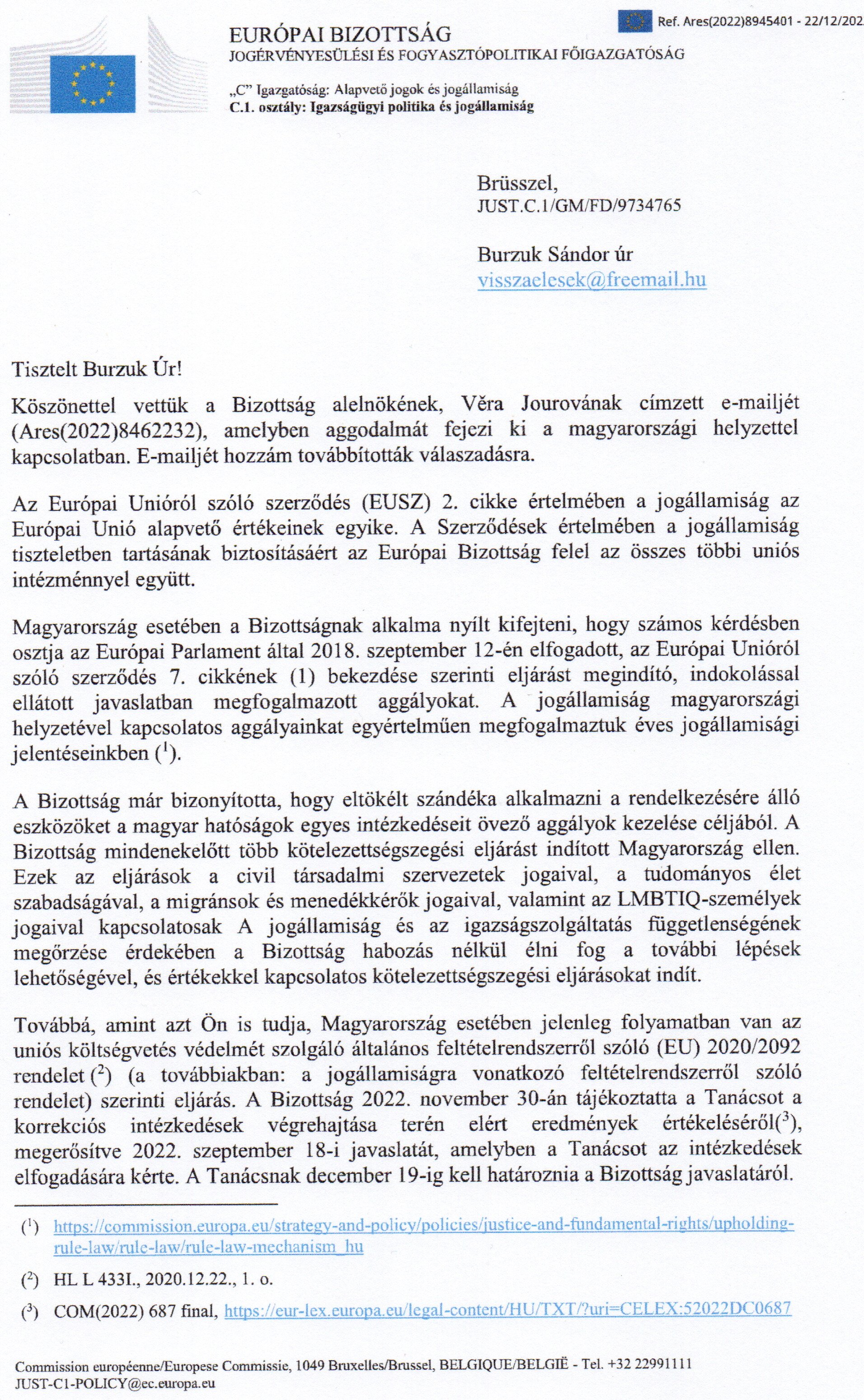 2022.12.06.-án levélben fordultam