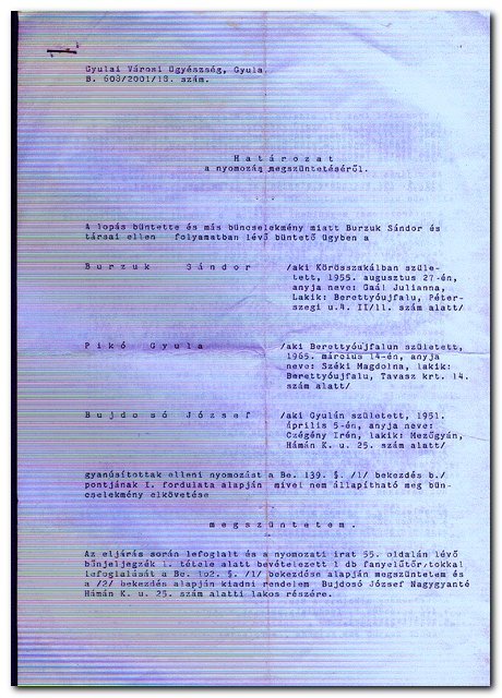 Ennek ellenére csatolom a Gyulai Városi Ügyészség határozatát, ami azt bizonyítja, kedves pletyka