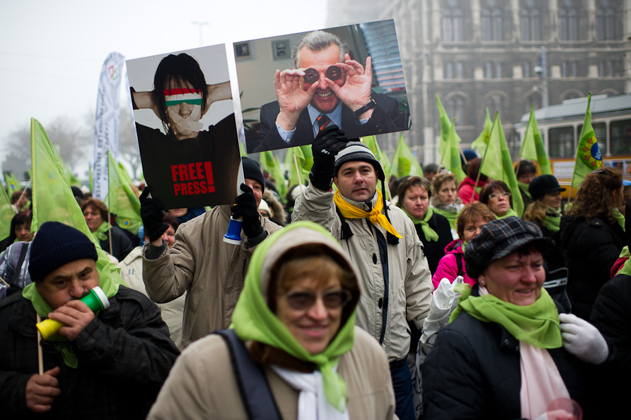 A Liga, a Szolidaritás mozgalom, pedagógusok és köztisztviselők is csatlakoztak ma a Munka Törvénykönyvének módosításai ellen kezdeményezett tüntetéshez, mely fél 12-kor indult a Kossuth térről. Délután az Egymillióan a Sajtószabadságért csoport szervezett demonstrációt a Képviselői Irodaház épületéhez, ahol az Orbán-kormány gazdaságpolitikája ellen, Matolcsy György lemondásáért és szakértőkből álló válságtanács felállításáért demonstráltak.