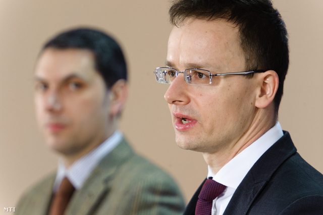 Szijjártó Péter és Lázár János az egri frakicóülés utáni sajtótájékoztatón