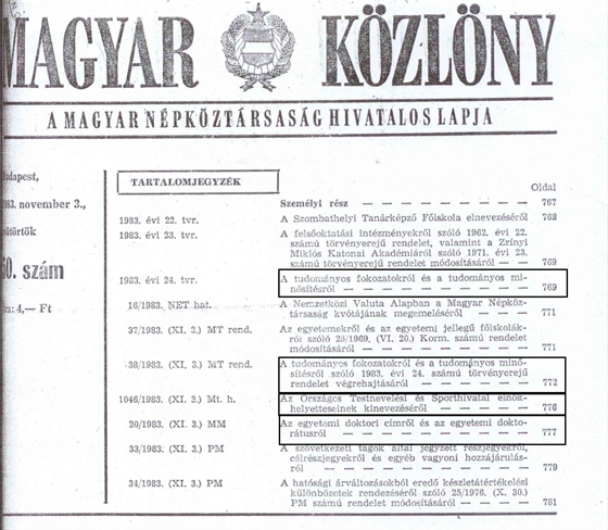 Ezen túlmenően azonban az 1992-ben hatályos jogszabályokból egyértelműen kiderül az is, hogy az úgynevezett kisdoktori tudományos fokozatnak számított, s a tudományos közlés szabályai vonatkoztak rá. A tudományos fokozatokról és a tudományos minősítésről szóló 1983. évi 24. számú törvényerejű rendelet szerint „Az egyetemeken (…) egyetemi tudományos fokozatként, egyetemi doktorátus szerezhető.” A törvényerejű rendelet végrehajtási szabálya, az egyetemekről és az egyetemi jellegű főiskolákról szóló minisztertanácsi rendelet ezt megismételve egyértelműen leszögezte: „az egyetemi doktorátus – egyetemi tudományos fokozat”. Az egyetemi doktorátusról szóló művelődési miniszteri rendelet emellett világosan rögzítette azt is, hogy: „az egyetemi doktorátus megszerzésének feltétele (…) a tudományos munka módszereinek alkalmazásával készített, önálló kutatáson alapuló értekezés vagy alkotás benyújtása”.