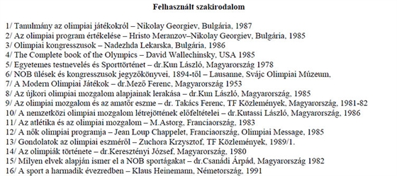 1991-ig 11 olimpiai kongresszust tartottak és 97 NOB-ülésre került sor – ez sok száz oldalnyi jegyzőkönyvet jelent, melyeket nem tüntetett fel külön-külön az irodalomjegyzékben. Márpedig a „törzsadatok”, amelyekre a köztársasági elnök hivatkozik, éppen ezekből és – elsődleges forrásokról lévén szó – csak ezekből a dokumentumokból szedhetők össze. Schmittnek tehát összesen több száz, némely esetben igen terjedelmes dokumentumból kellett merítenie, összefoglalnia a lényeget.